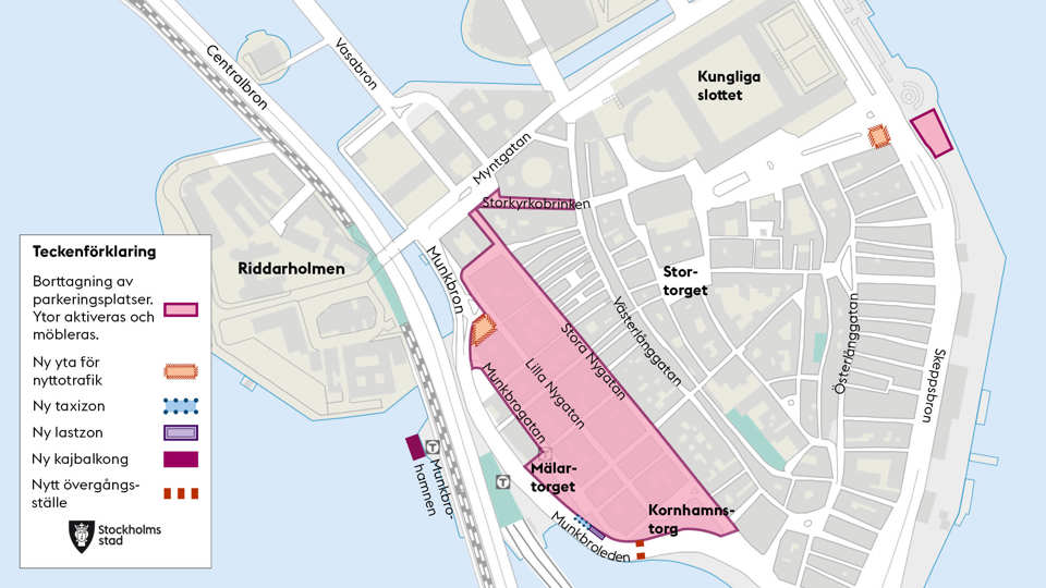 I anslutning till inre Gamla stan kan nyttotrafik parkera och leveranstrafik angöra på två platser – dessa parkeringsplatser ligger vid Munkbrotorget och på Slottsbacken.